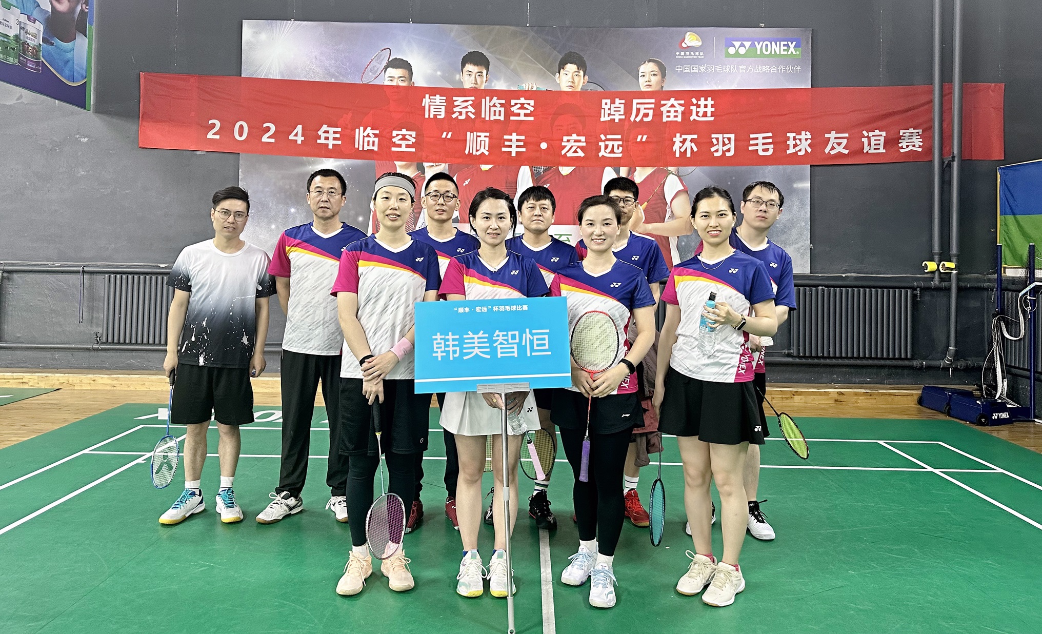 2023 年 11 月 24 日,以“情系臨空 踔歷奮進”為主題的“臨空科園貿易杯”羽毛球友誼賽在賽點公園羽毛球館成功舉辦。本次比賽分為男雙、混雙兩個項目,近 100 名選手參賽。韓美集團共8位員工參與混雙比賽,經過一天的激流角逐,最終奪得混雙冠軍,可喜可賀!本次羽毛球比賽的成功舉辦,加強和鞏固了園區企業之間的合作交流,充分調動了職工參與體育鍛煉的積極性,展現了職工隊伍的良好精神風貌。